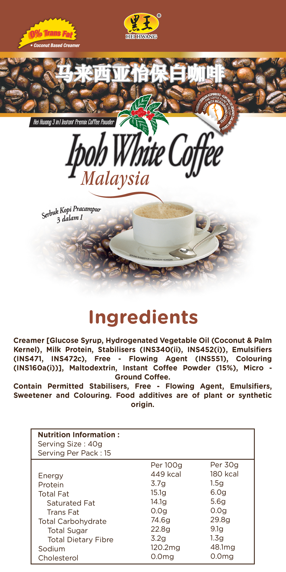 Hei Hwang 3 in 1 Instant Premix White Coffee (600g)